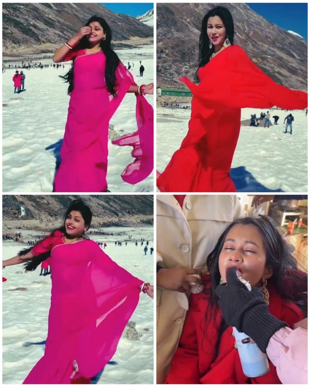 సోషల్ మీడియా పిచ్చి మామూలుగా లేదు. ఓవర్నైట్ పాపులర్ కావడం కోసం యూత్ చిత్రవిచిఆ్రాలన్నీ చేస్తున్నది. కొన్నిసార్లు ప్రాణాలు కూడా పోగొట్టుకుంటున్నది. ఇట్టాగే గడ్డకట్టిన మంచులో రీల్స్ చేయడానికి ప్రయత్నించి ప్రాణాల మీదకు తెచ్చుకుందో మహిళ. ఆ వీడియో ఇప్పుడు సోషల్ మీడియాలో చక్కర్లు కొడుతోంది. మంచు ప్రాంతాలకు వెళ్లినప్పుడు కొన్ని జాగ్రత్తలు తీసుకోవాలి. చలిని తట్టుకునే ఇన్సులేట్ బట్టలు వేసుకోవాలి. అప్పుడప్పుడు ఆక్సిజన్ స్థాయిలు కూడా పడిపోతాయి. ఇవన్నీ తెలుసుకోకుండా ఇద్దరు మహిళలు డాన్సులు చేస్తున్నారు. ఇందులో ఒకరు తెగ ఇబ్బంది పడ్డారు. ఆక్సిజన్ సరిగ్గా అందుక తల తిరిగింది. ఏడుస్తూ కుప్పకూలింది. వెంటనే అక్కడున్న వారు రియాక్టయ్యి హెల్ప్ చేయడంతో పెను ప్రమాదం తప్పింది. లేకపోతే ఆమె ప్రాణాలు పోయేవి.